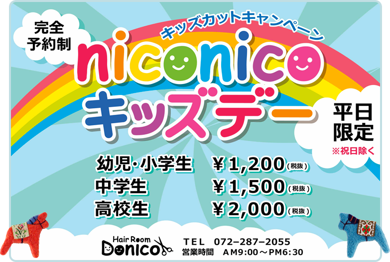Hair Room Donico (ドニコ) 所在地/ 大阪府堺市東区白鷺町1丁21-5 TEL/072-287-2055[予約優先制] 定休日/毎週月曜日,第3火曜日